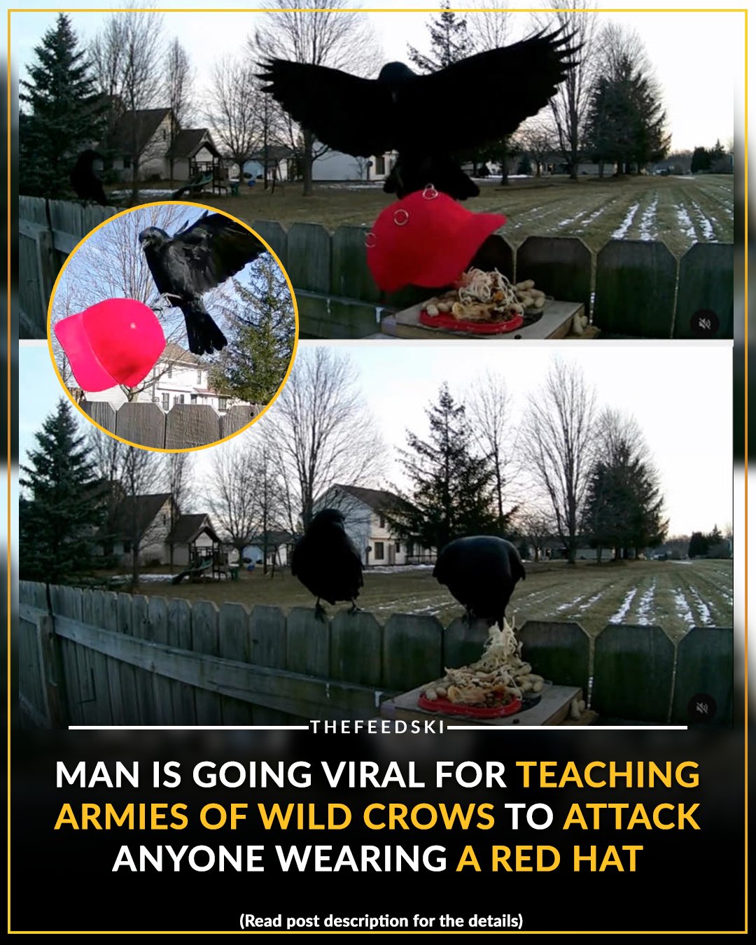 A man on the internet has officially started the first biological war of 2026 by training an army of wild crows to attack anyone wearing a red hat.The user, known as “Biz Dave,” went viral this week for documenting his step-by-step process of weaponizing neighborhood birds against political slogans.Using a method called “Pavlovian conditioning,” he started by placing peanuts and high-value treats under red plastic containers in his backyard.The crows quickly learned that “Red Object = Delicious Snack.”Once they mastered flipping the containers, he swapped them out for red baseball caps.Now, whenever these crows see a red hat, they don’t see a political statement, they see a loot box that needs to be opened.Dave posted videos of the birds swooping down and snatching hats off customized dummies in under two minutes.While some people think it’s hilarious, wildlife experts are actually terrified.They warned that because crows are social learners, these trained birds could teach their offspring to target red hats, meaning we might be one generation away from a world where you can’t wear a Cincinnati Reds cap without getting dive-bombed by the air force.