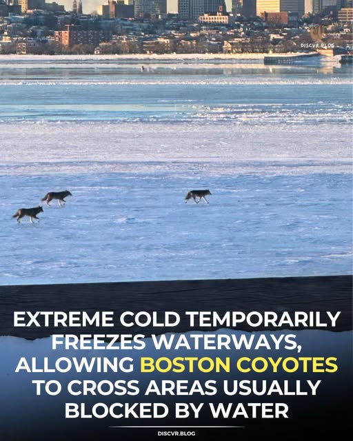 Coyotes are already a permanent part of Boston’s urban ecosystem. They swim rivers, follow green corridors, and move mostly at night. When severe cold hits, shallow waterways, marsh edges, and sheltered coves can partially freeze, turning water from a barrier into a bridge.