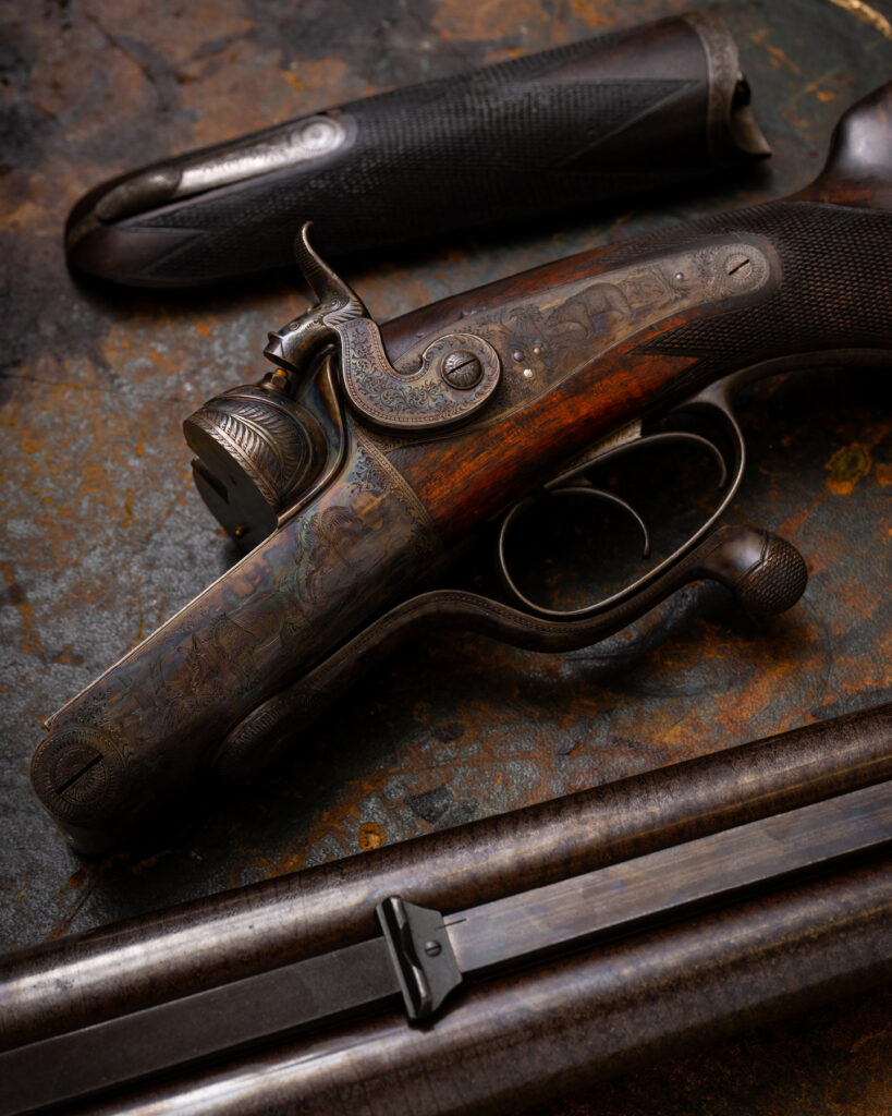 Cut into steel in 1884, this lion was never intended to fade. More than 140 years later, the engraving remains assured and the colour case hardening continues to hold its depth.